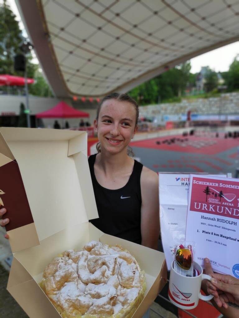 Den Hauptlauf über acht Kilometer konnte Hannah Rudolph (WSV Elbingerode, 39:34.5) für sich entscheiden. In einem spannenden Duell mit Juliane Schökel (NSV Wernigerode, 42:09 min), die bereits 2007 über 4km gewann, konnte sich die 15-jährige Hüttenröderin auf der zweiten Runde absetzten und sich mit ihrer Laufzeit sogar an Rang zehn der ewigen Bestenliste platzieren. Von dieser Auseinandersetzung profitierte dann Cornelia Klockau (MSV Eintracht Halberstadt, 42:01 min), die sich noch auf den letzten Metern knapp vor Juliane Schökel auf den zweiten Platz vorkämpfte.